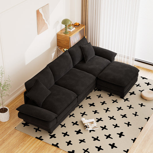 Muumblus 108" Modular Sectional Sofa with Ottoman, L-Shaped Couch with Chaise, Corduroy Sleeper Couch for Living Room, Black