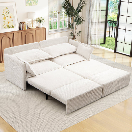 Muumblus Futon Sofa Bed, Convertible Couch Bed with USB, Corduroy Loveseat Sleeper for Small Spaces, Beige