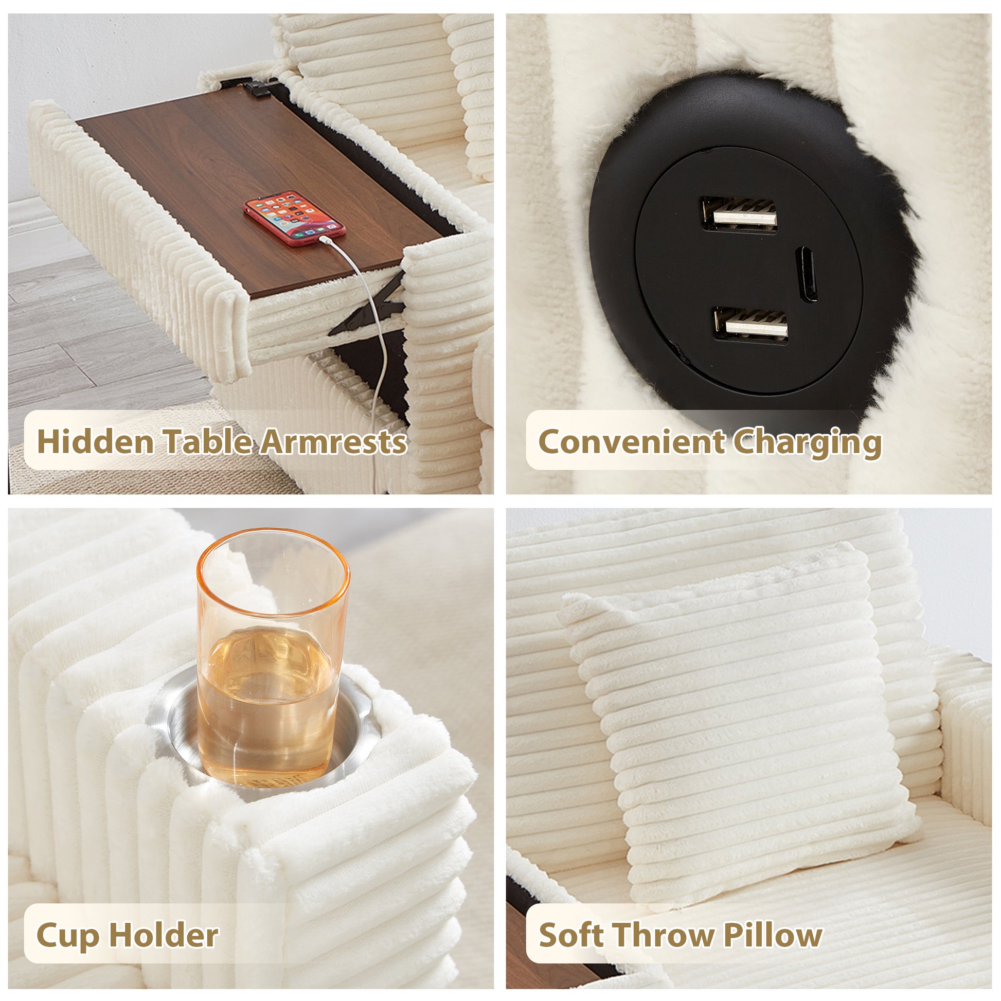 Experience ultimate comfort and convenience with our all-in-one multi-functional accent chair. Designed for modern living, this plush corduroy armchair combines superior comfort with smart features to create your perfect personal relaxation space. Sink into the soft, durable fabric and enjoy built-in amenities like a hidden side table for snacks or work, a USB charging port to keep your devices powered, and a spacious storage ottoman to stow away pillows and blankets. The included cup holder ensures your drinks are always within reach. This isn't just a chair; it's your new favorite spot to read, work, stream, and unwind.