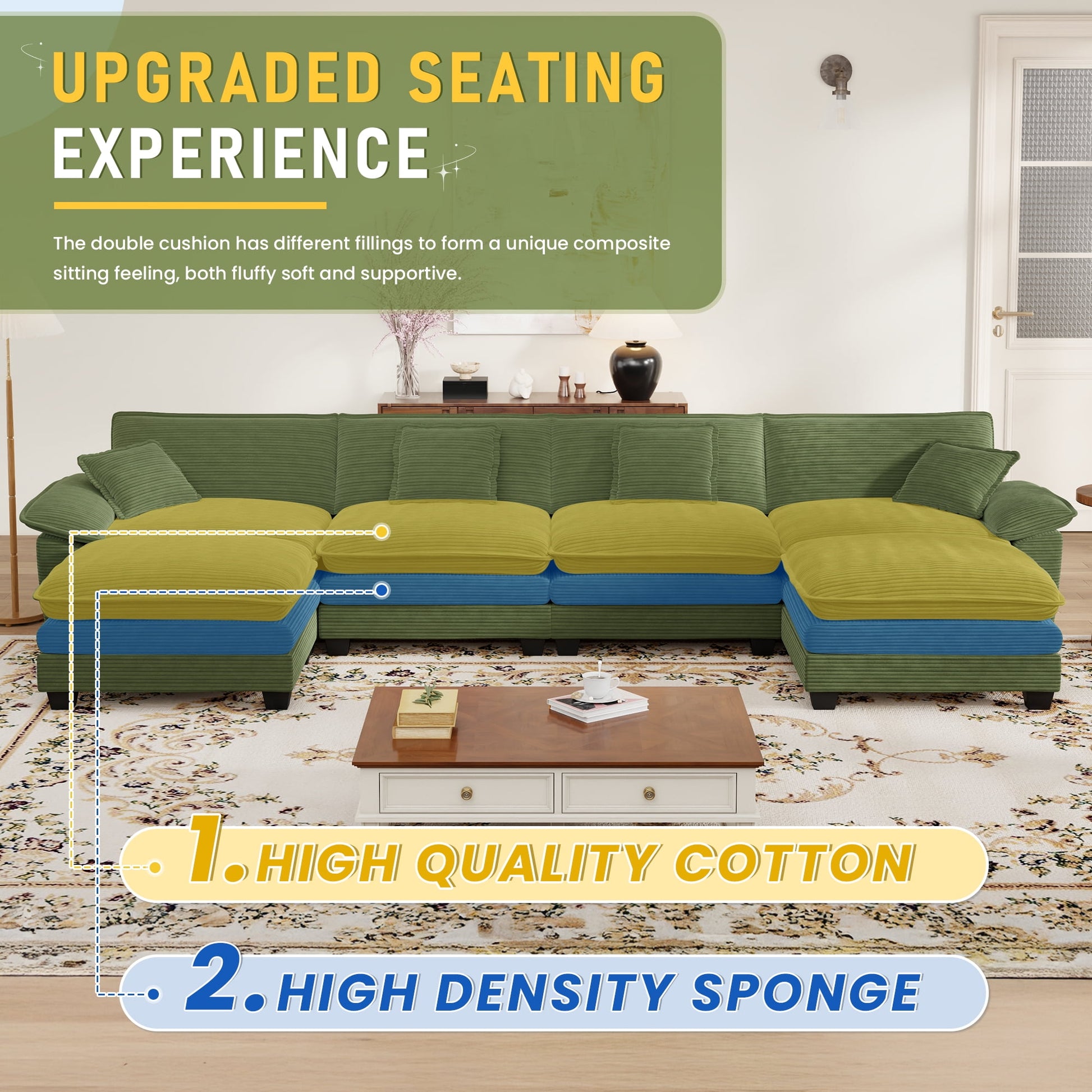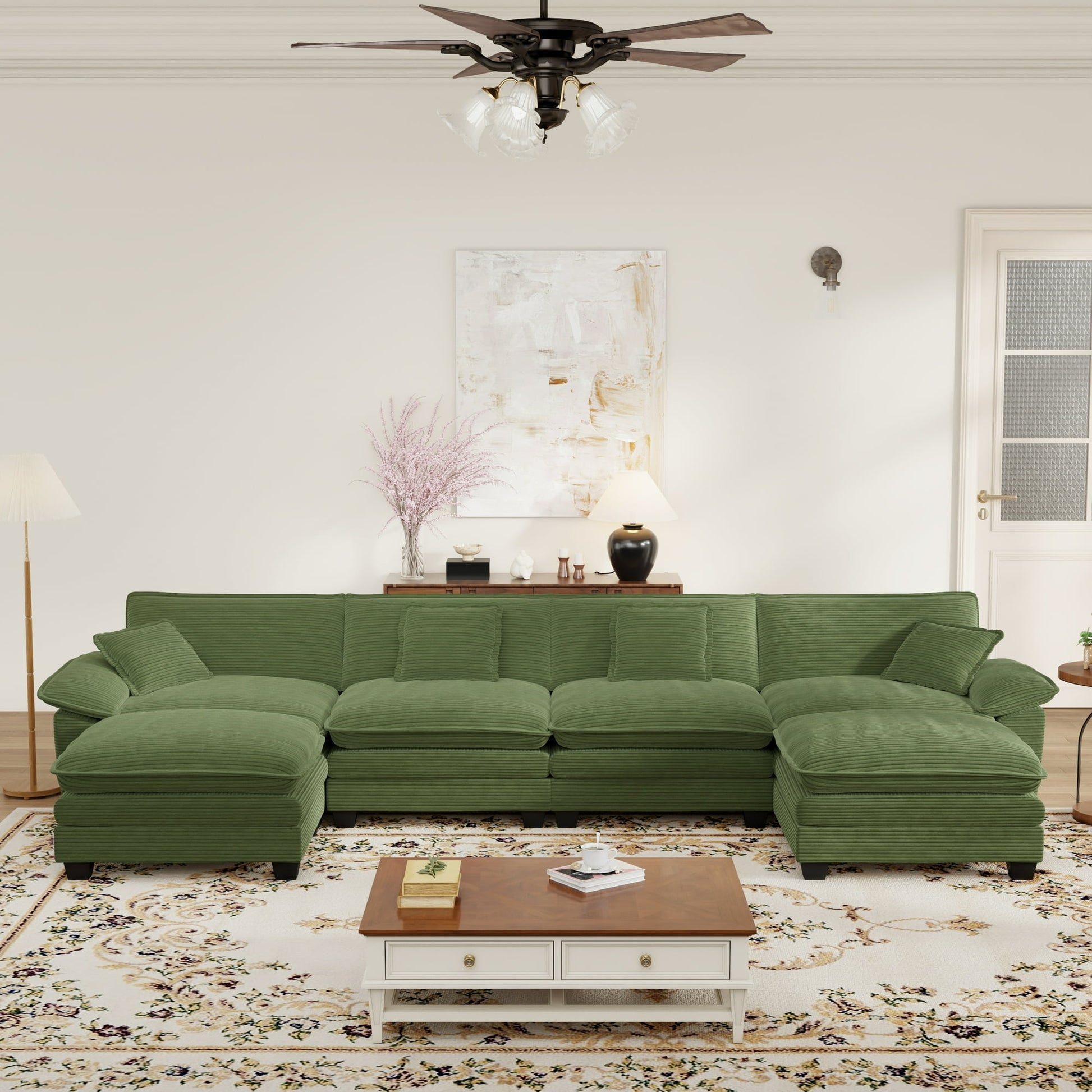 Muumblus Modular Sectional Sofa with 2 Ottoman, Oversize U-Shape Couch for Living Room, Modern Corduroy Sleeper Couches and Sofas Sectional: