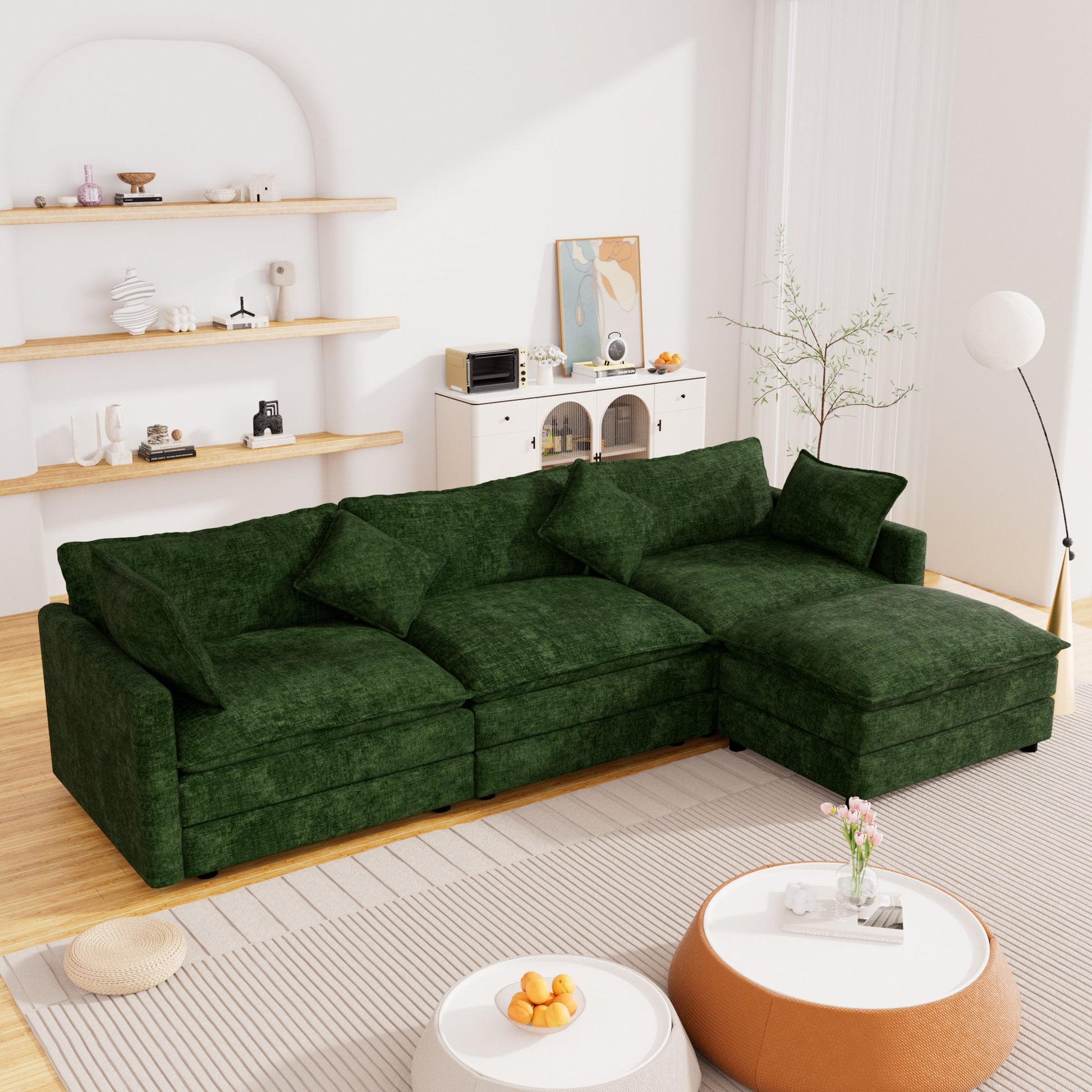 Muumblus Sectional Sofa Cloud Couch with Reversible Ottoman, L-Shaped Chenille Sofa for Living Rooms, Beige